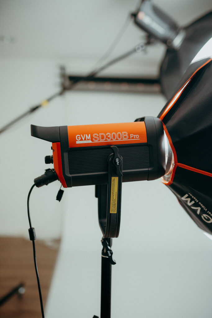 Die gesamte Ausstattung des Studios ist im Preis enthalten und steht Dir zur Verfügung. Lediglich für den Verbrauch von Papierhintergründen werden € 20 pro Meter berechnet.